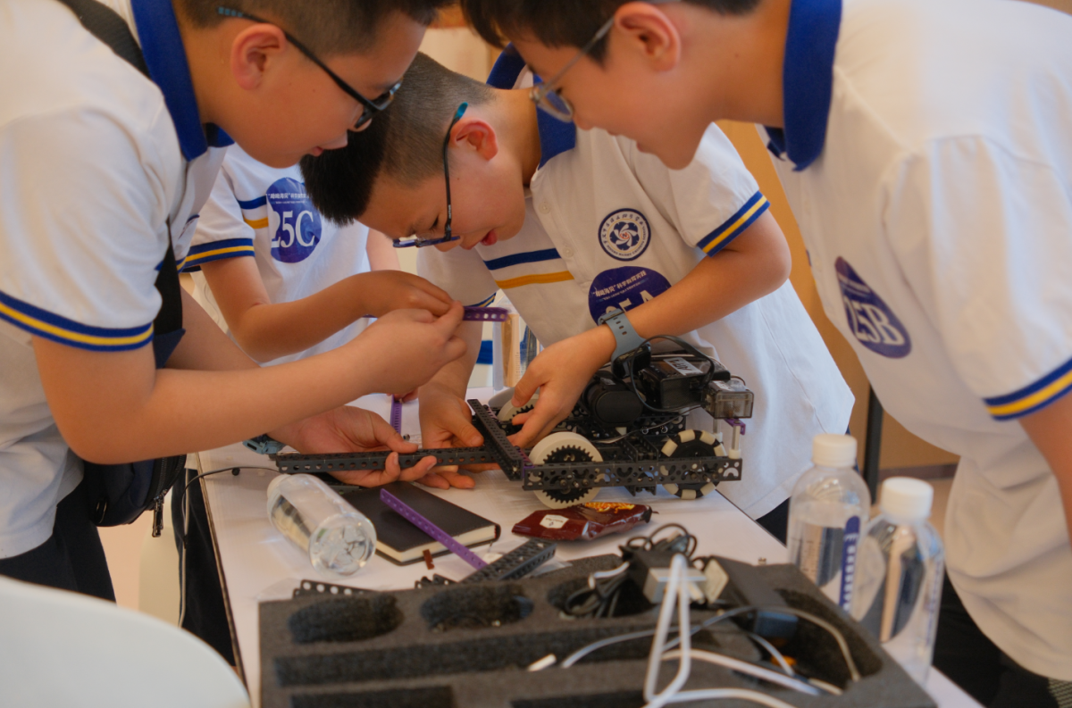 海曙外國語學(xué)校當(dāng)天有40個學(xué)員代表在顧勤華老師的帶領(lǐng)下,前來參加研學(xué)活動,從零開始搭建,用自己的作品去完成任務(wù),在活動中思考與改進,同學(xué)們最大的感受就是“好玩、有趣”。