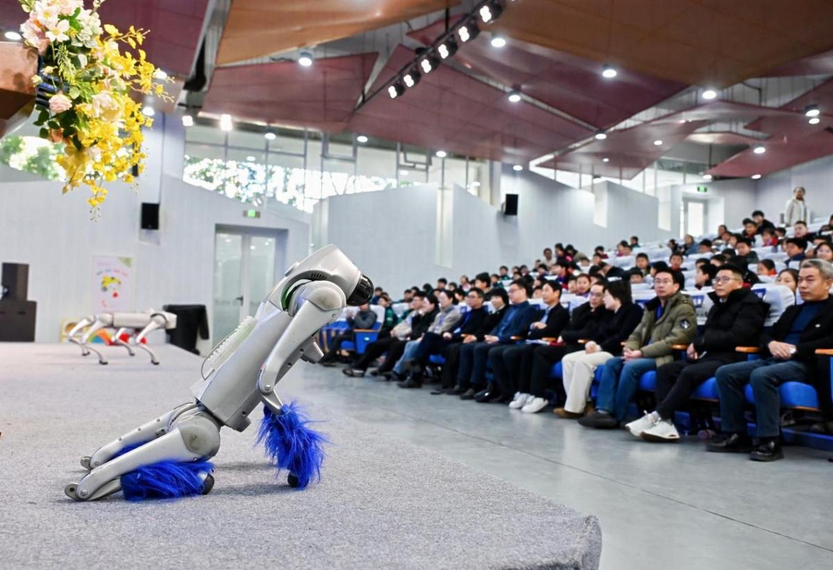 開幕式上,科技感十足的表演瞬間點燃全場氛圍。機器人與機器狗伴著動感音樂靈動起舞,精準動作盡顯AI活力;編程無人機編隊穿梭盤旋,在空中勾勒出絢麗的科技畫卷,引得現(xiàn)場掌聲、歡呼聲不斷。